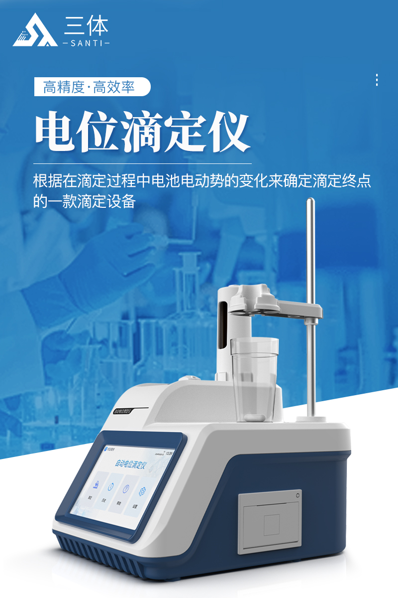 自動電位滴定儀是一種用于化學(xué)分析的精密儀器,他通過自動添加滴定劑來確定樣品中特定成分的濃度。該儀器基于電位滴定原理工作,即根據(jù)在滴定過程中電池電動勢的變化來確定滴定終點的一款滴定設(shè)備。設(shè)備滿足國家檢定規(guī)程JJG 814-2015《自動電位滴定儀》儀器級別中的0.05級別,即儀器**示值誤差為±1.5%,儀器示值重復(fù)性≤0.2%