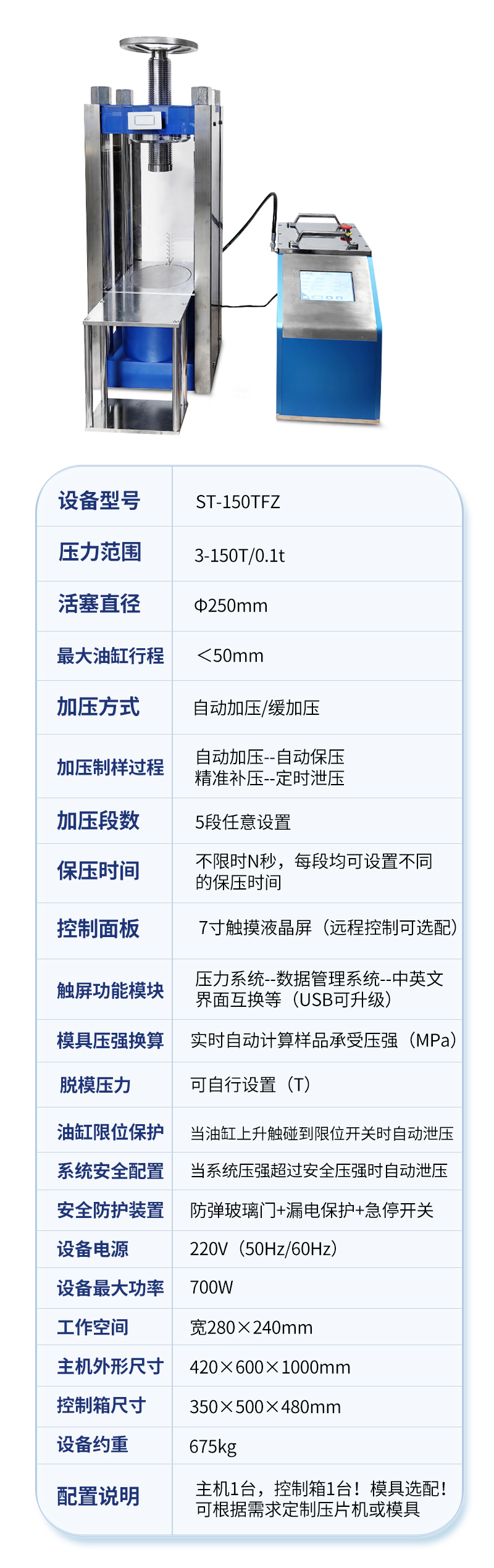 | 壓力范圍 | 3-150T/0.1t |